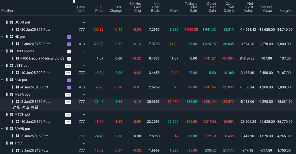 MTCH – this is a bit of a long shot as well, currently worth 25$ with 22$ of that intrinsic, lets write it off and remove another 25k$ from the potential.